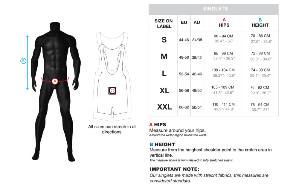 Singles made of inserts for a colourful wrestling suit look and contrasting finishing ribbon.