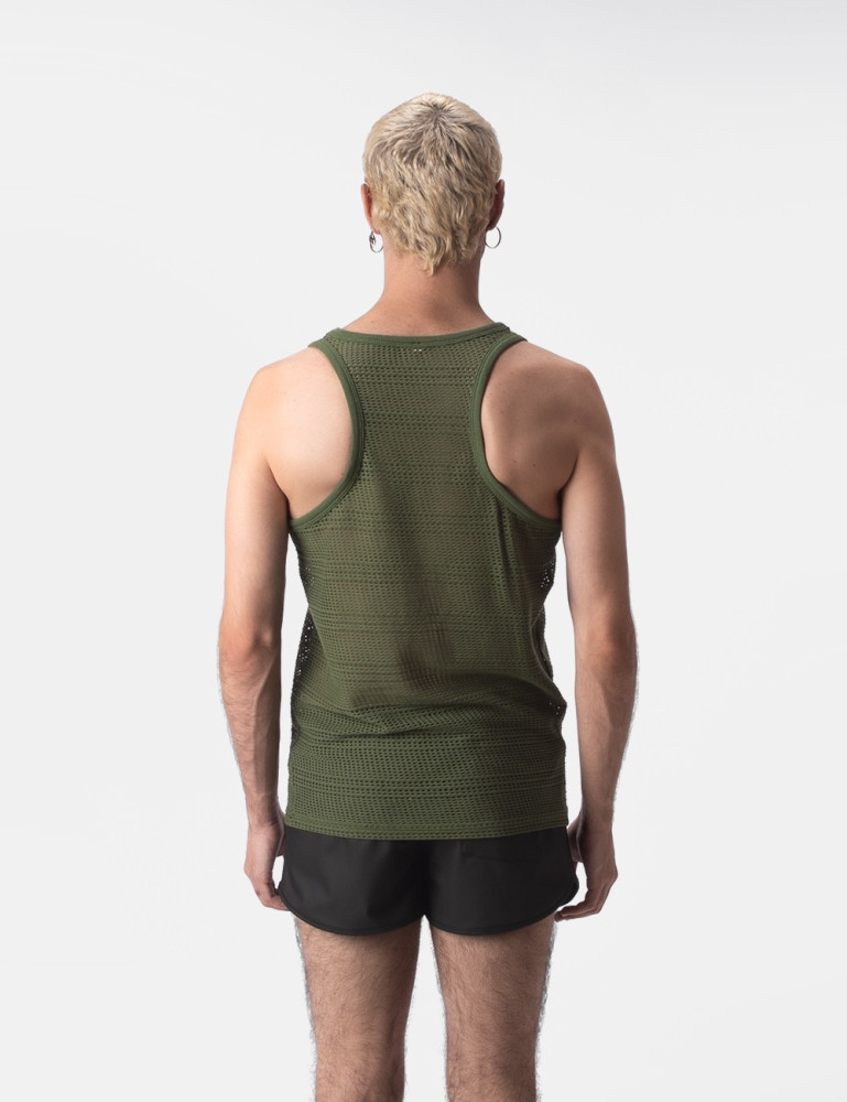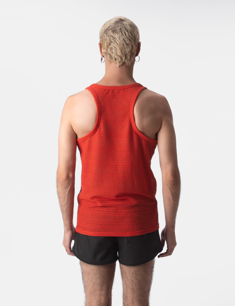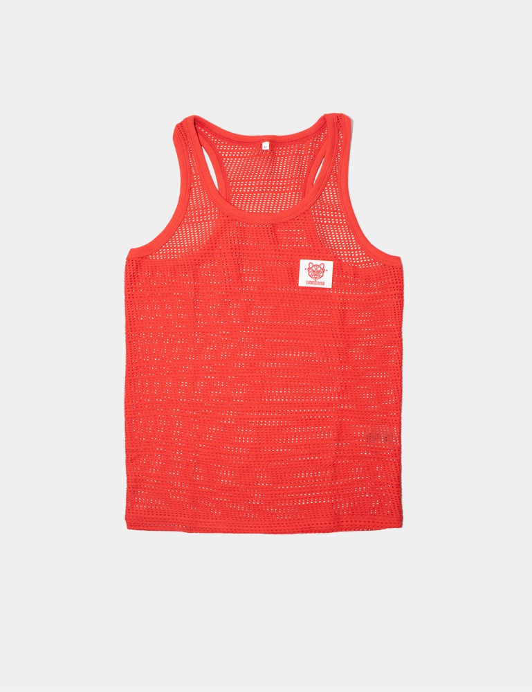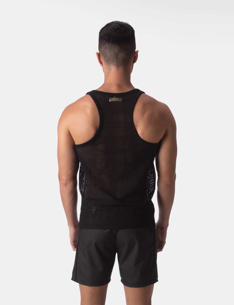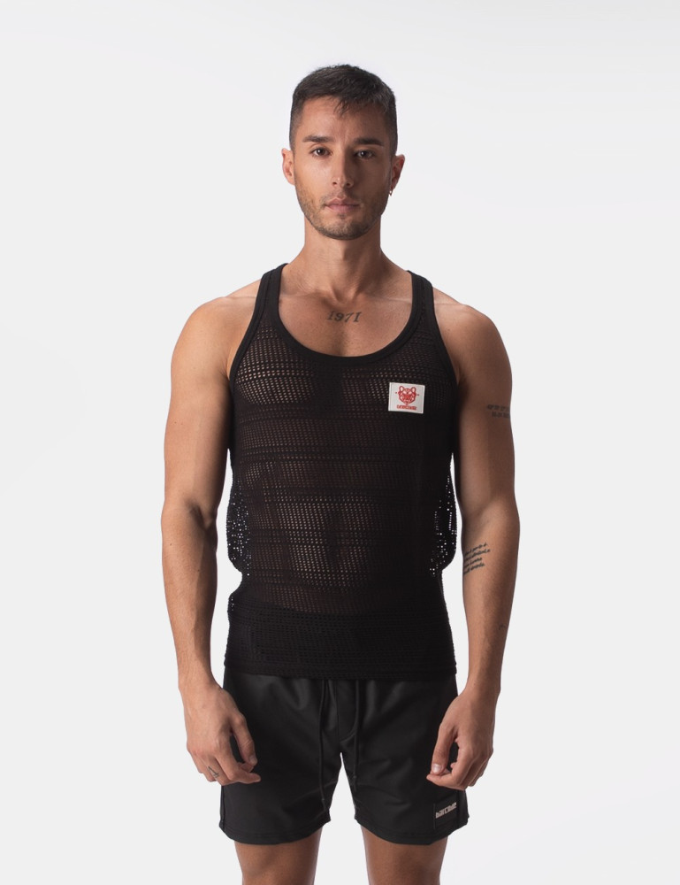 Tank top made of thin-cut, semi-through mesh. Silicone logo on the chest.