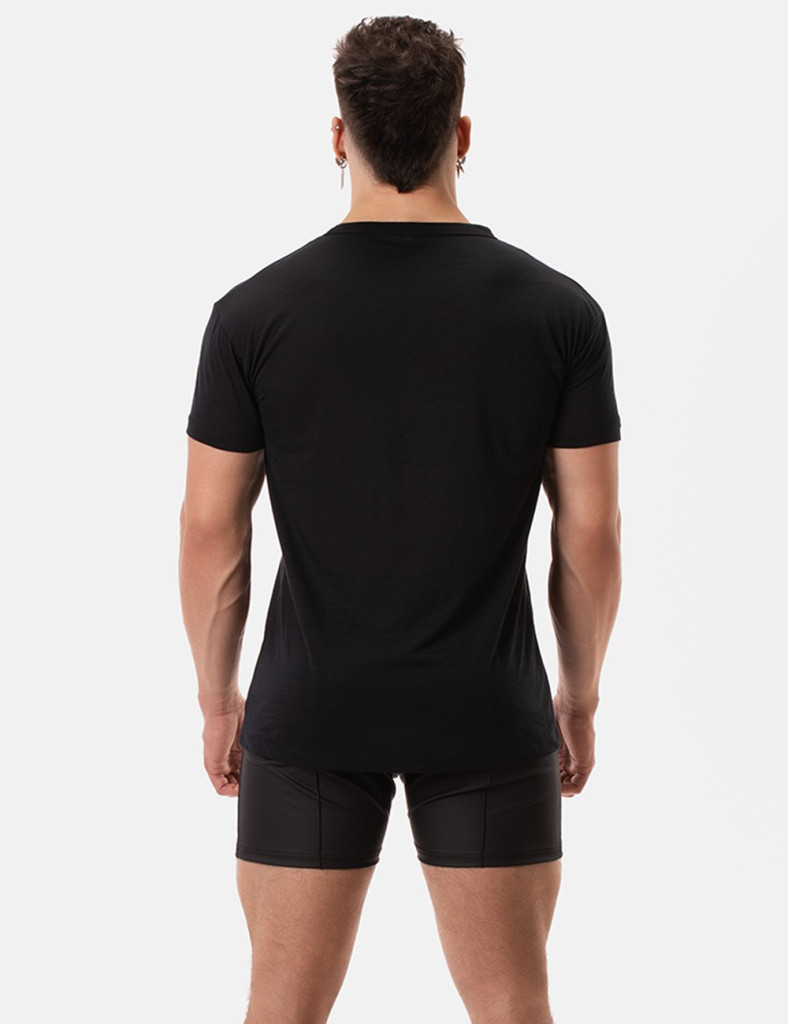 Very light T-shirt. Gym cut with chest pocket.