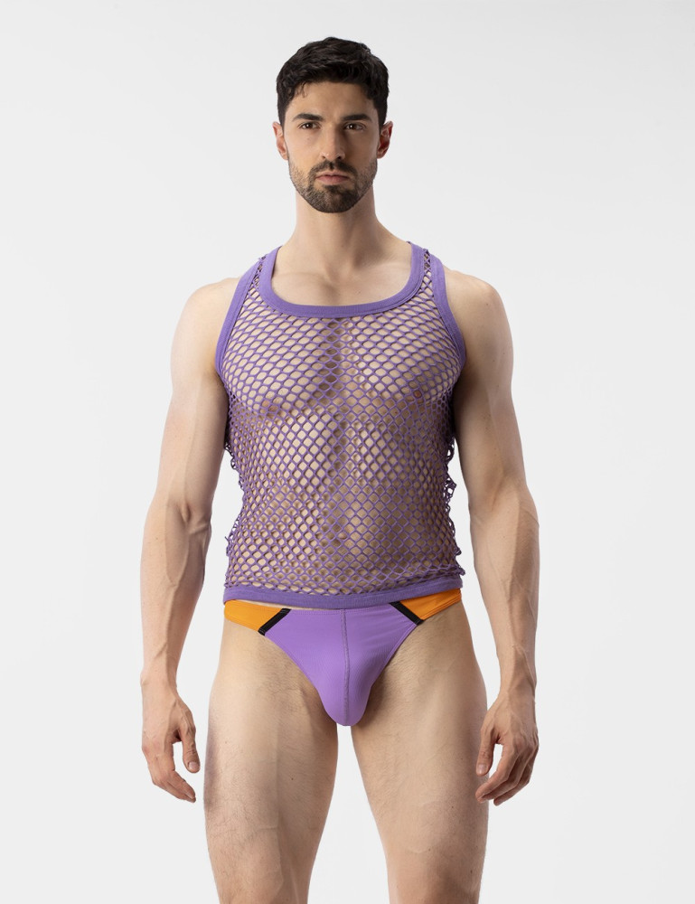 The top is designed with a large open mesh that provides a revealing and sharp look. It has solid embellishment around the neck and arms for greater structure. The overall style speaks with its bold and modern, provocative and fashionable design.