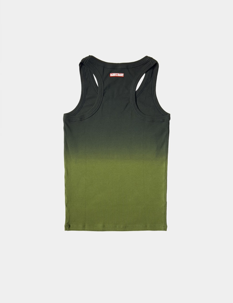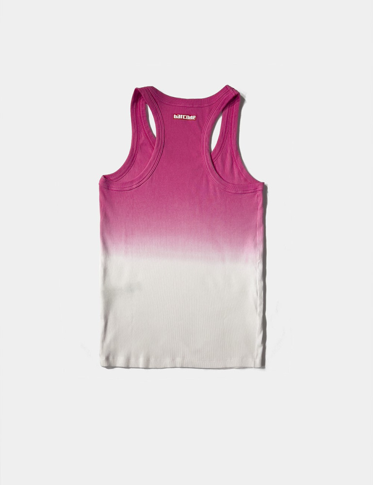 This tank with a gripping neckline features a fitted style that highlights the wearer's physique. The fabric seamlessly transitions from one shade to the next, creating a degrading effect that adds a dynamic visual appeal. The upper is made of comfortable, elastic ribbed material, ideal for everyday wear or training.