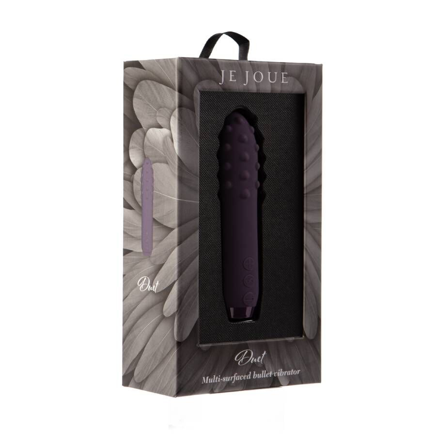 Ismerd meg a Duetet, egy többfelületű golyóvibrátort, amelynek egyik oldalán kis, lekerekített, fokozatos örömpontok, a másikon selymes sima felület, hogy sokszínű érzéseket keltsen a testben. Használd a Duetet külső örömpontok stimulálására, mint például a csikló, mellbimbók és comb. Ha tovább szeretnél felfedezni, a Duet tökéletes partner a gyengéd, sekély behatolási játékhoz, mélyen gazdag rezgéseivel. Selymesen, puha, testre biztonságos, orvosi minőségű szilikonjával a Duet élvezetes érzés tapintani, és még jobb élményt nyújtani. Engedd, hogy Je Joue híres morajlás motorjai mélyebbre kényeztessék testedet, gazdagabb, élvezetesebb intim élményt nyújtva.