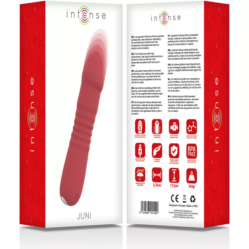 Fedezd fel az INTENSE vibrátort – JUNI UP & DOWN 10 VIBRATIONS RED, kifejezetten 18 éves és idősebb nők számára tervezve! Ez az innovatív játék belső motorjával a hüvelyt stimulálja, amely automatikusan végrehajtja a belépés és kilépés mozgását. Készülj fel egyedi és élvezetes érzésekre!