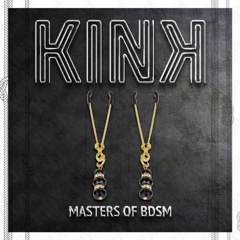 KINK - ARANY, VÉKONY MELLBIMBÓCSÍPÓK 3 FEKETE ÜVEGGYÖNGYVEL, 7 CM