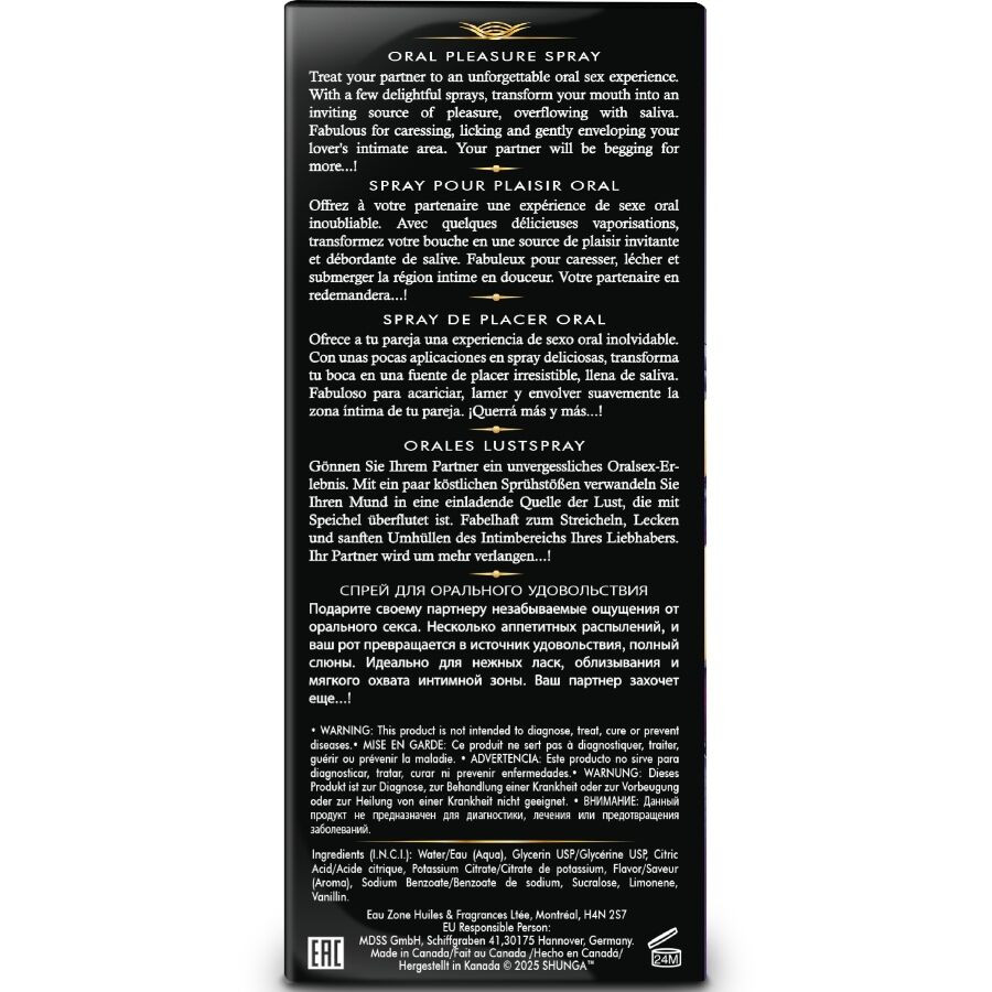 Fedezz fel egy új módot az orális szex élvezetére ezzel a spray-vel, amely egy újabb szintre emeli az élményt. Néhány fújással a szád puhább, nedvebb textúrát kap, tökéletes arra, hogy érzéki módon felfedezd partnered minden intim sarkát. Finom ízei felébresztik az érzékeket, és minden csókot, nyalást és érintést ellenállhatatlan ingerré alakítanak, amely természetesen növeli a vágyat.
