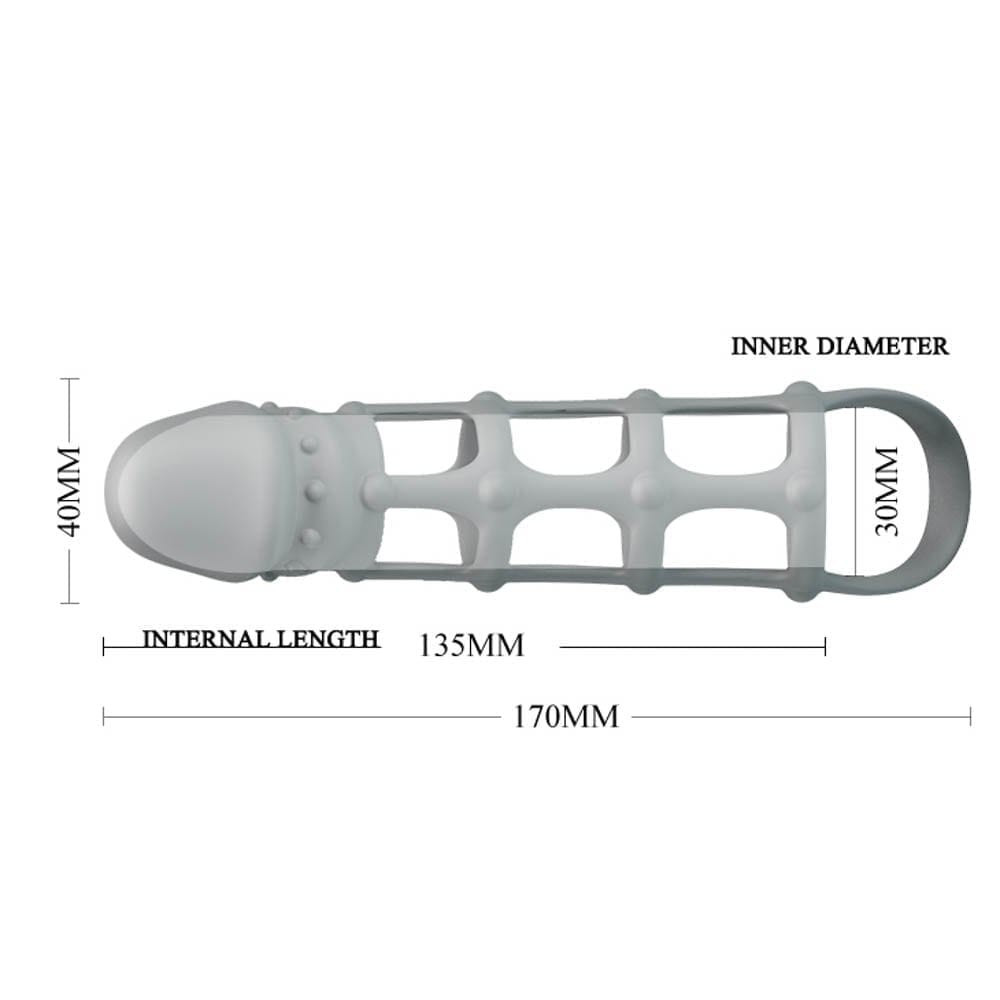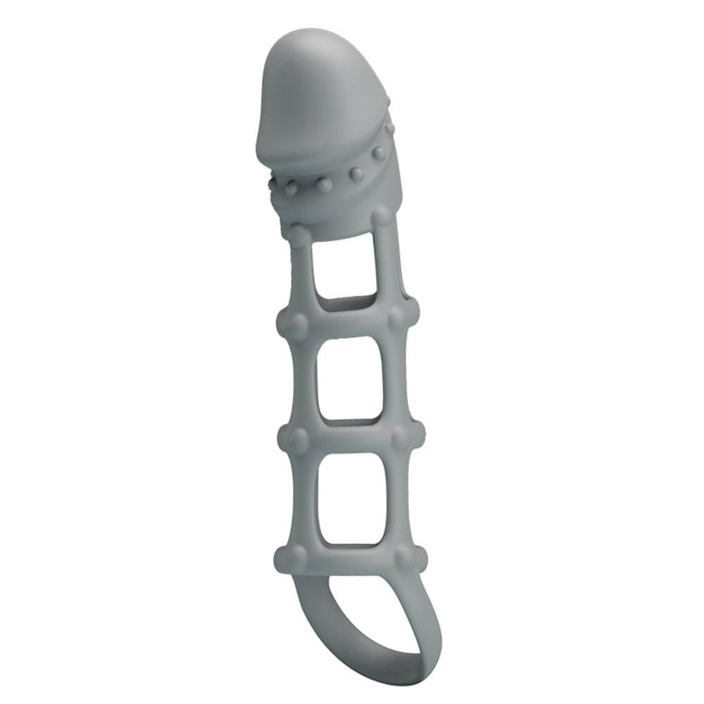 An erotic accessory that covers the entire penis or vibrator, can be placed in a condom-like manner, with a testicular ring. Its external design is exciting for the partner. The thickness of its material reduces the perception of stimuli, thus making it possible to prolong the time of intercourse.