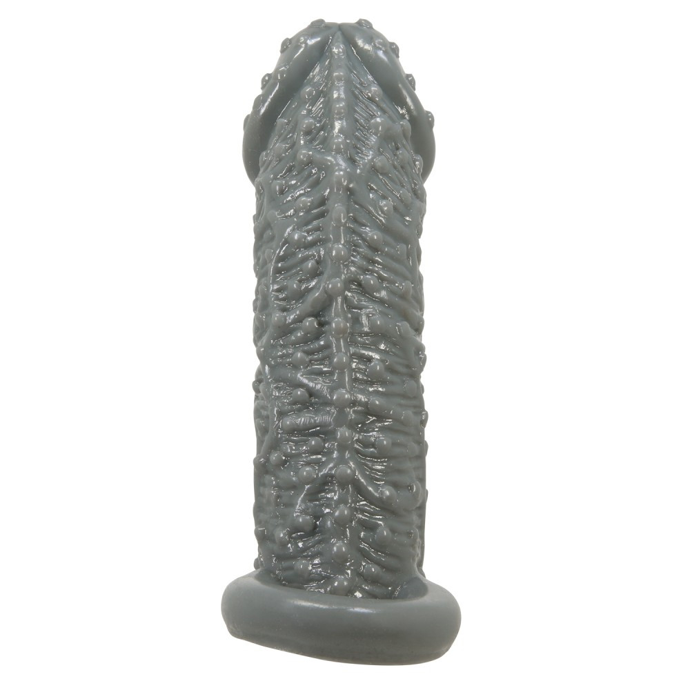Condom-like penis or vibrator covering the entire penis or vibrator erotic accessory with a testicular ring that can be placed in a different way. Exterior design of the It is exciting for the partner. The thickness of the material makes it easier to perceive stimuli thus making it possible to extend the duration of the act.