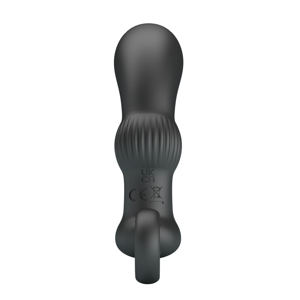 Made of high-quality, skin-friendly material, anatomically perfectly shaped with 12 vibrator functions, memory function Prostate and perineum massager with a secure grip ring.