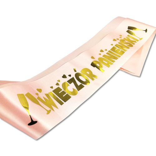 Készülj fel arra, hogy a jövendőbeli menyasszony ragyogjon egy igazán különleges kiegészítővel – ez a lenyűgöző, aranyszínű „Wieczór Panieński” feliratú szatén szarfa tökéletes választás a lánybúcsú hangulatának megkoronázására.