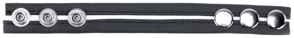 Discover a new Dimension of sensuality This premium black leather ring with a sleek white line and adjustable metal clips offers personalized experiences. Comfort and style come together - experience a variety of thrills!