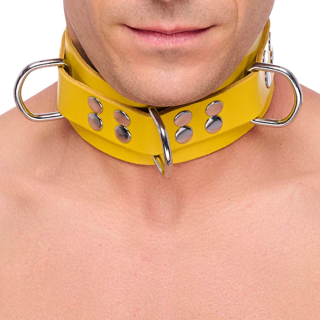 Discover the Ultra Leather Necklace, now in vibrant yellow! Its sophisticated 5.5 cm wide design and unique, vegetable-tanned genuine cowhide are a symbol of premium style and comfort. Thanks to its adjustable size from 38 to 52 cm, it fits perfectly, while the metal buckles and hoops guarantee durability. Highlight your individual style with this elegant necklace made in Europe.
