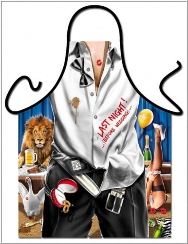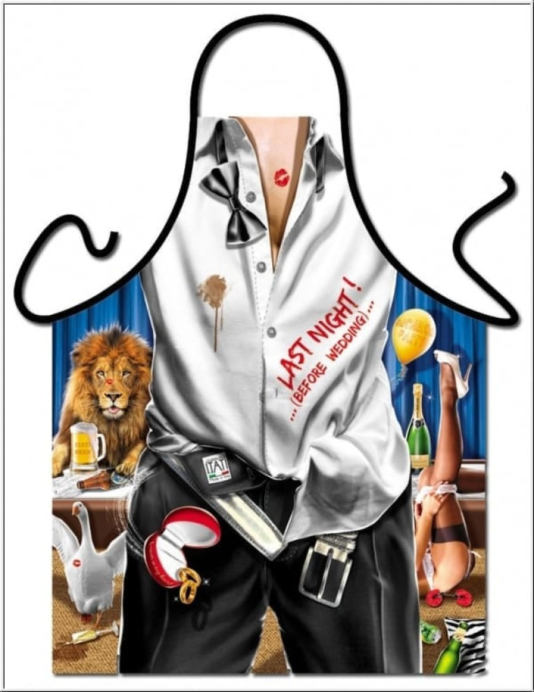 Funny, patterned apron for men. It can be an accessory for bachelor and bachelorette parties, weekend cooking.