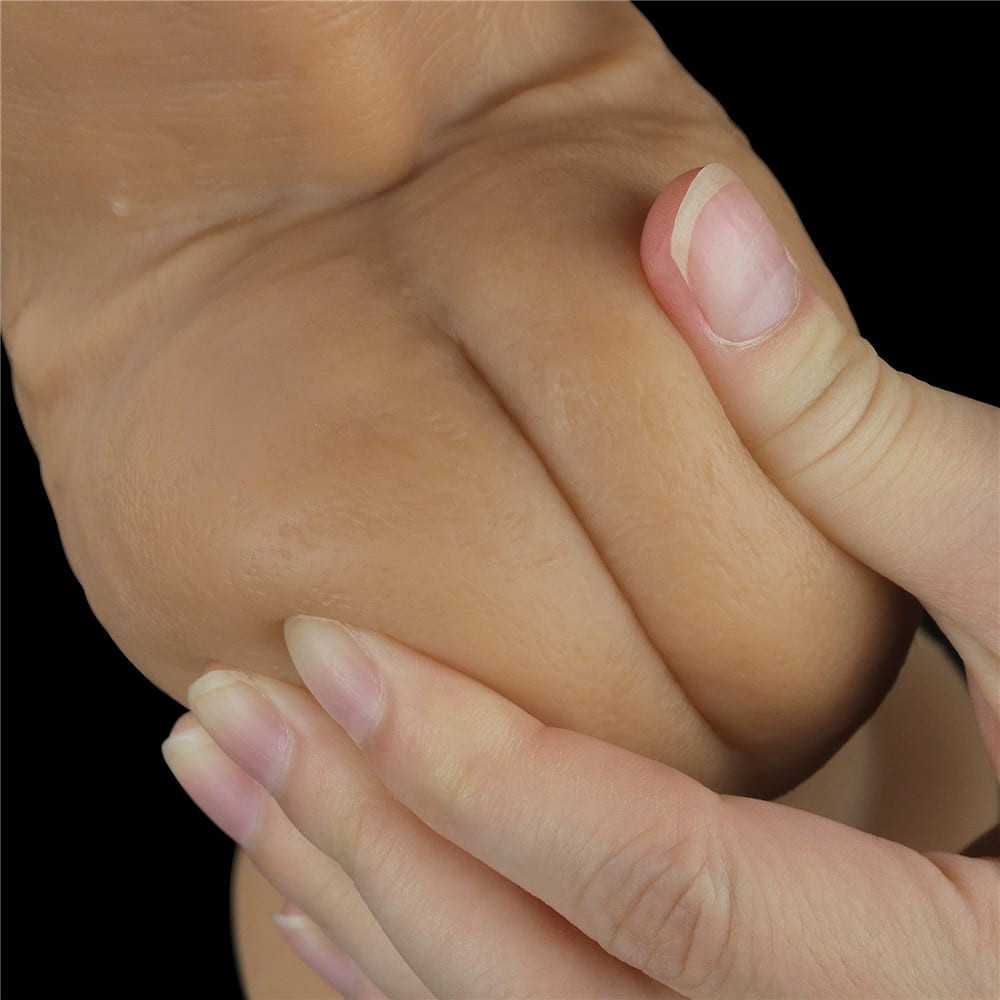 Penis shaped with a soft outer layer and a hard inner core, made of a leather-like material similar to body tissue, without a motor, with a veined surface, complete with testicles, bendable, double-layered, with a unique, comfortable handle design. It can be attached to a flat surface with the help of its suction cup. The length of the handle is 5 cm.