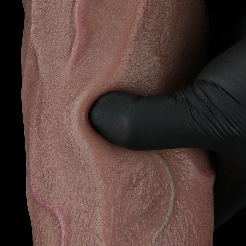 Made of high-quality material, penis-shaped, soft outer layer and hard inner core, made of a leather-like material similar to body tissue, without a motor, with a veined surface, complete with testicles, bendable. It can be attached to a flat surface with the help of its suction cup.