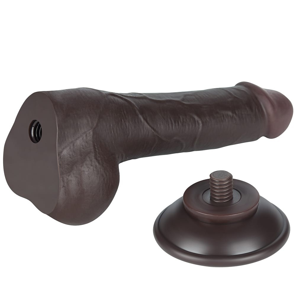 Handmade in the shape of a penis with a soft outer layer and with a hard inner core, similar to body tissue, leathery to the touch made of material, without motor, with a veined surface, complete with testicles, bendable, with sliding skin. With the help of its suction cup, it can be applied to a flat surface can be attached, which can be screwed on and off.