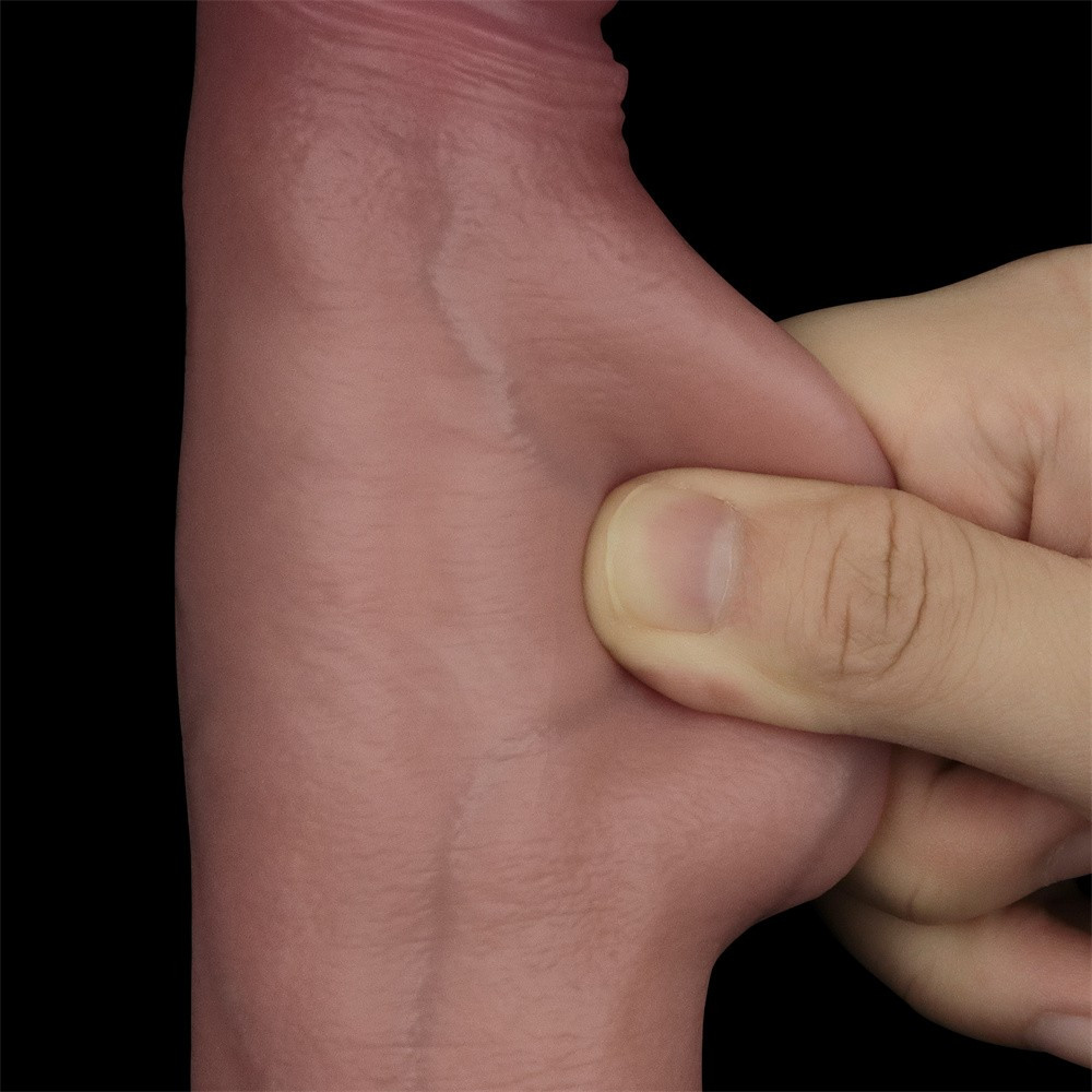 Orvosi minőségű kettős sűrűségű szilikonból készült dildó, amely soha nem látott részletességgel utánozza a valódi bőr érzetét, egyedülálló és hihetetlenül valósághű érzést kínálva. Kézzel gyártott, pénisz formájú, lágy külső réteggel és kemény belső maggal rendelkező, testszövethez hasonló, bőrszerű tapintású anyagból készült, motor nélküli, erezett felületű, herékkel kiegészített, hajlítható, csúsztatható bőrrel ellátott, kettős sűrűségű szilikonból készített dildó. Tapadókorongja segítségével sík felületre rögzíthető.