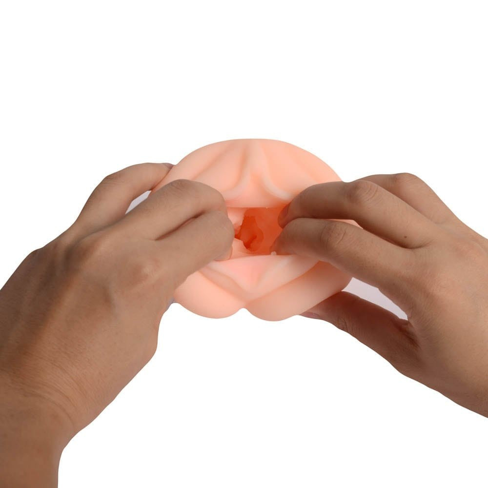 Individual erotic toy made of high-quality, leather-like material, recommended for men, with a realistic design, pleated inner surface, vagina-shaped body opening. By using it, self-control during intercourse can be greatly improved, so its time can be significantly increased.