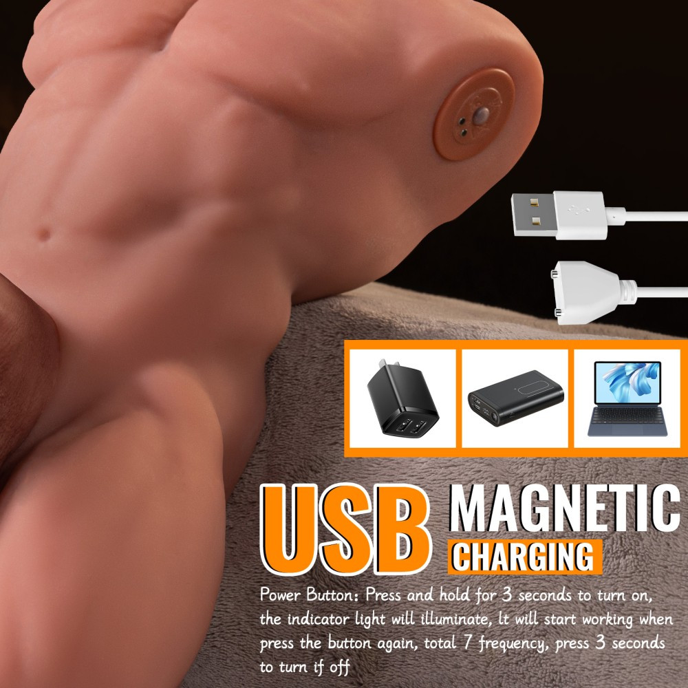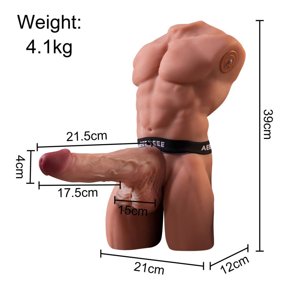 Kiváló minőségű, puha, bőrszerű anyagból készített, péniszt és ánuszt formázó testnyílással ellátott erotikus játék, valósághű testméretekkel, a pénisz 3 sebességi, 4 toló és rezgési funkcióval rendelkezik. A torzó méretei: 39 cm magas, szélesség 21 cm. A pénisz hossza 17,5 cm, átmérője 4 cm. Súlya:4,1 kg. Használatával az aktus közbeni önkontroll nagymértékben fejleszthető, így annak ideje jelentősen növelhető. Applikációval vezérelhető.