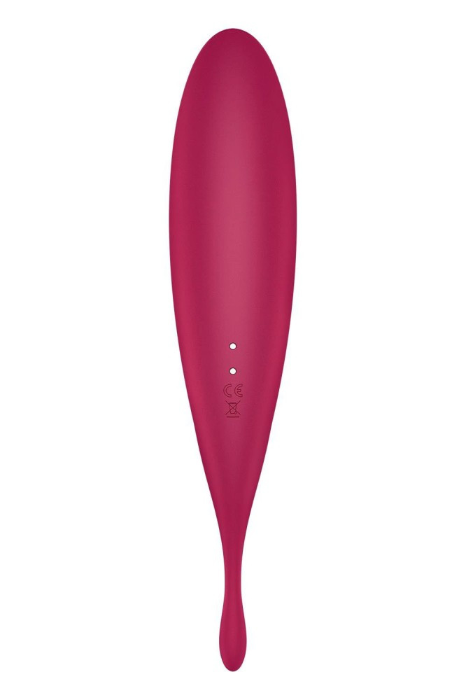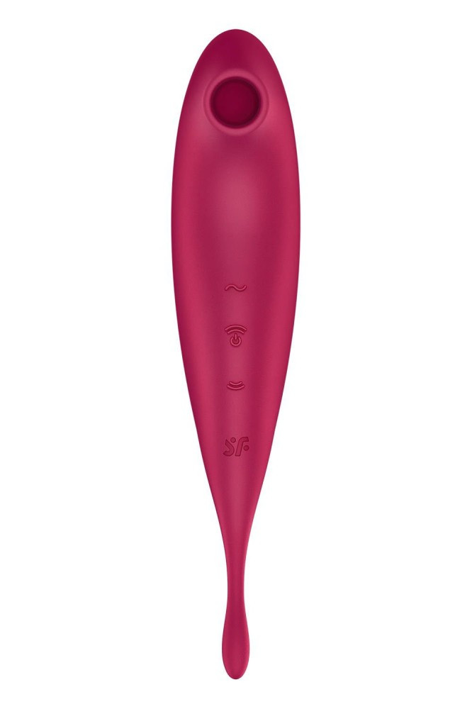 A clitoral stimulator made of skin-friendly material with a silky surface, high-quality, ergonomically designed, flexible, equipped with two motors, 11 air waves at one end and 12 vibrator functions at the other end. The two motors can also be controlled separately. Available on iOS and Android, the application can be used to create unique vibration functions, either from a musical rhythm (e.g. Spotify), your own or your partner's voice, or from ambient noise, which can also be shared with others, even your partner can control the device.