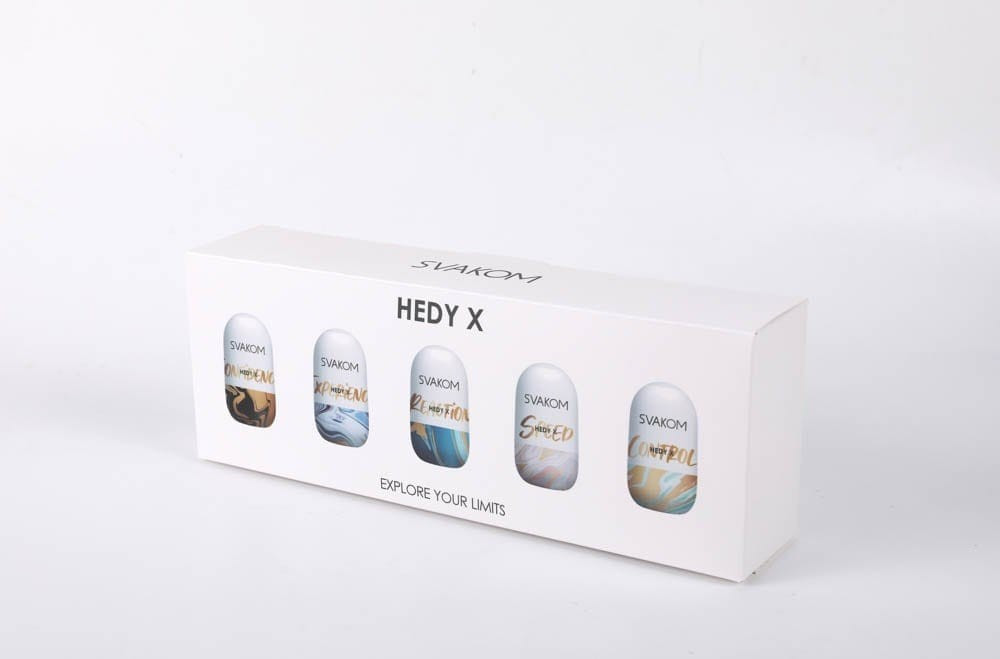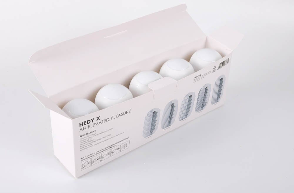An individual erotic toy made of leather-like, ultra-soft material in an egg-shaped plastic case for men, which is flexible and creates a real sensation of vaginal contact. The package contains 5 products with different inner surfaces. By using them, self-control during intercourse can be greatly improved, so its time can be significantly increased.