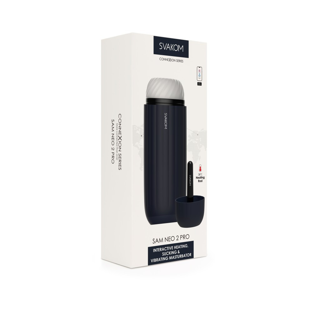 Very high quality and functional automatic masturbator for from SVAKOM, one of the world's leading manufacturers of intimate accessories. The big The powerful vibration module has 5 vibration and suction stimulation modes. For the original version, larger suction and vibration functions have become more powerful. A unique feature of the Pro version is that the sleeve can be heated to 38°C. Bluetooth Enabled Smartphone You can download the SVAKOM application using your unique vibration functions can be created, either from musical rhythm, from your own voice or from your partner's voice or ambient noise, which can also be shared with others. You can also initiate a secure video chat connection, so even your partner You can control the device while still being able to see each other.  SVAKOM is smart "Extended O" function reduces the combined vibration and suction.
