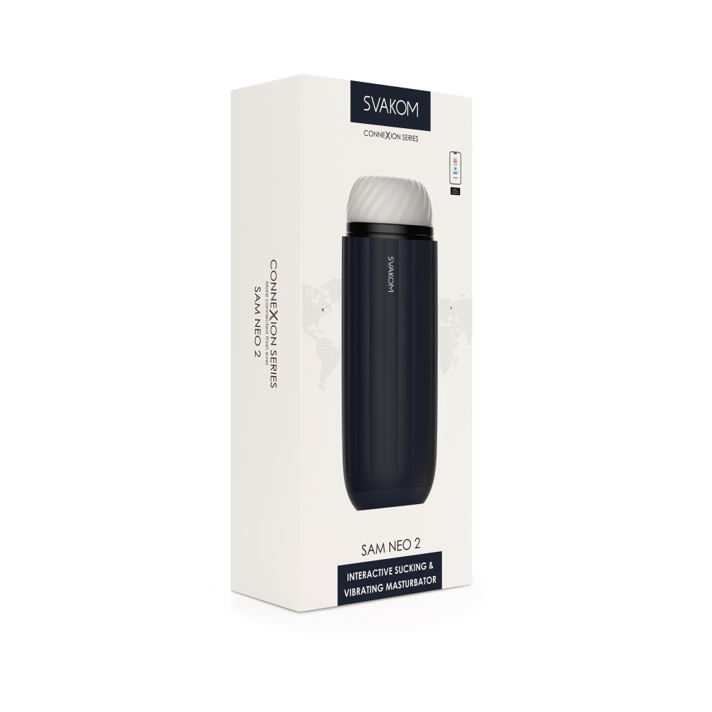 Very high quality and functional automatic masturbator for from SVAKOM, one of the world's leading manufacturers of intimate accessories. The big The powerful vibration module has 5 vibration and suction stimulation modes. For the original version, larger suction and vibration functions have become more powerful. Can be downloaded via a Bluetooth enabled smartphone using the SVAKOM app unique vibration functions can be created, either from musical rhythm, from your own or from your partner's voice or ambient noises, which can also be shared with others. You can also initiate a secure video chat connection so that you can Your partner can also control the device while they can see each other.  A SUKOM's clever "Extended O" function reduces the combined vibration and suction.