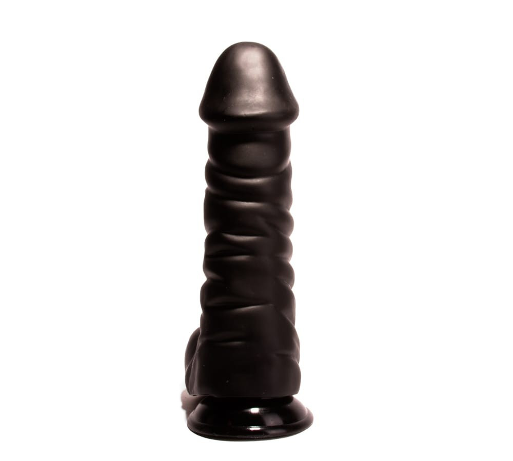 Handmade and dyed, high-quality, flexible, penis-shaped, leather-like material similar to body tissue, without a motor, with a strongly veined surface, complete with testicles. It can be attached to a flat surface with the help of its suction cup.