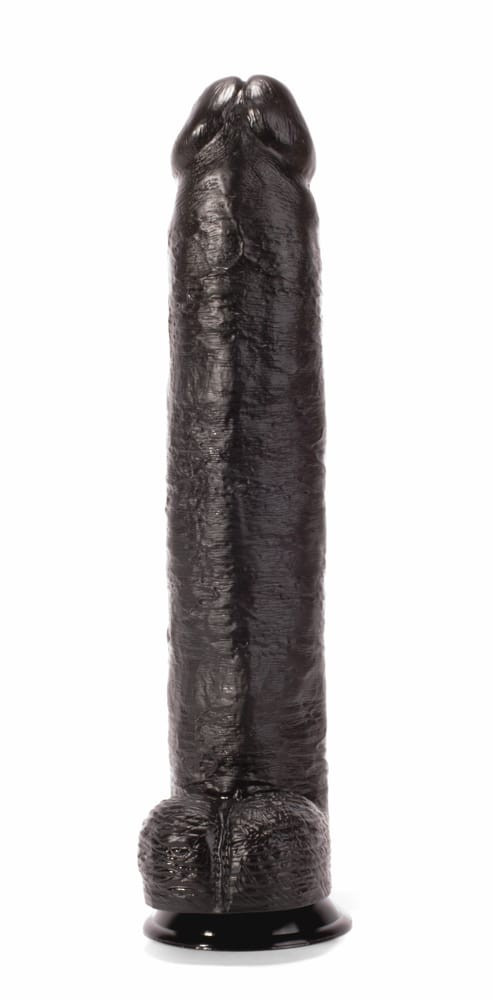 A penis-shaped, leather-like material made of leather-like material in the shape of a penis, without a motor, with a veined surface, complete with testicles. It can be attached to a flat surface with the help of its suction cup.