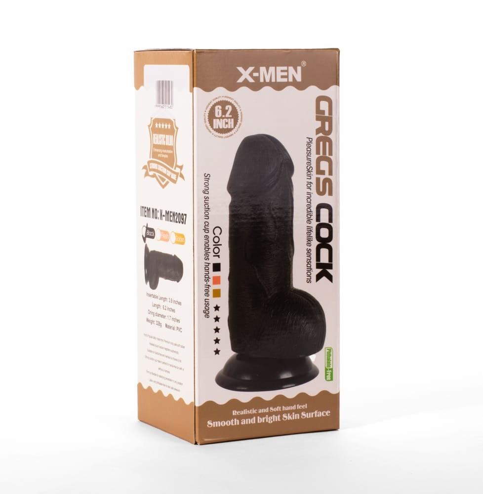 A high-quality made of a material in the shape of a penis, similar to body tissue, leather-like, leathery, without a motor, with a veined surface, complete with testicles, bendable. It can be attached to a flat surface with the help of its suction cup.